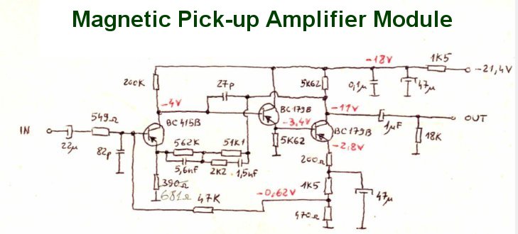 Figure 5 shows the amplifier for pick-up magnetic head. It uses the RIAA type equalization to improve the frequency response of vinyl records.