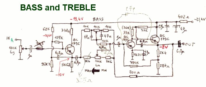 -tone correction, Baxendall type with BASS and TREBLE