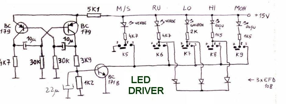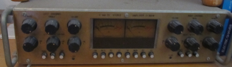 This is a complex and complete power audio station (at the bottom in above image) with one stereo output and 6 stereo channels input (three of them can be mixed) that includes several stages of amplifiers. It took me a couple of years to build this unit and in 1988 was ready for use. It still works after being used for 20 years.