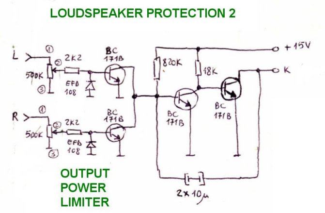 -several electronic protections for loudspeakers, including DC signal protection, timer on power on, instant disconnect on dangerous events and power output limiter