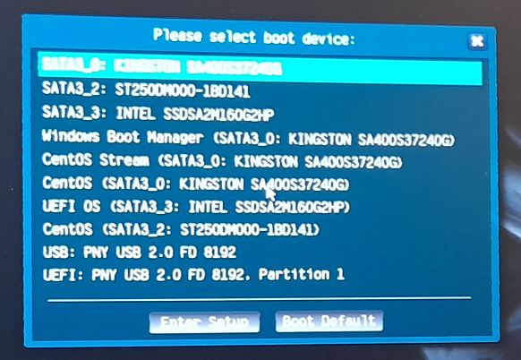 The fifth multiboot configuration shows a method to install Windows 10 and CentOS 8 Workstation on the same UEFI whithout CSM computer with a 240 GB SSD.