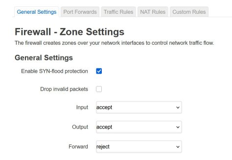 4. Setup network interfaces WiFi, LAN, WAN and firewall, verify internet connection and router functions (figure 5)